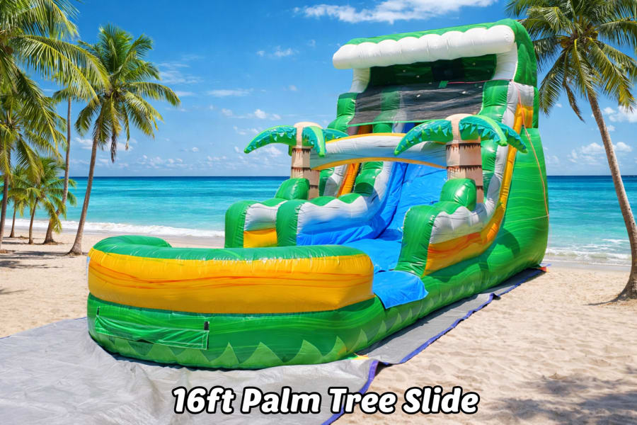 Book the 16FT PALM TREE SLIDE WET/DRY Today! 🚚