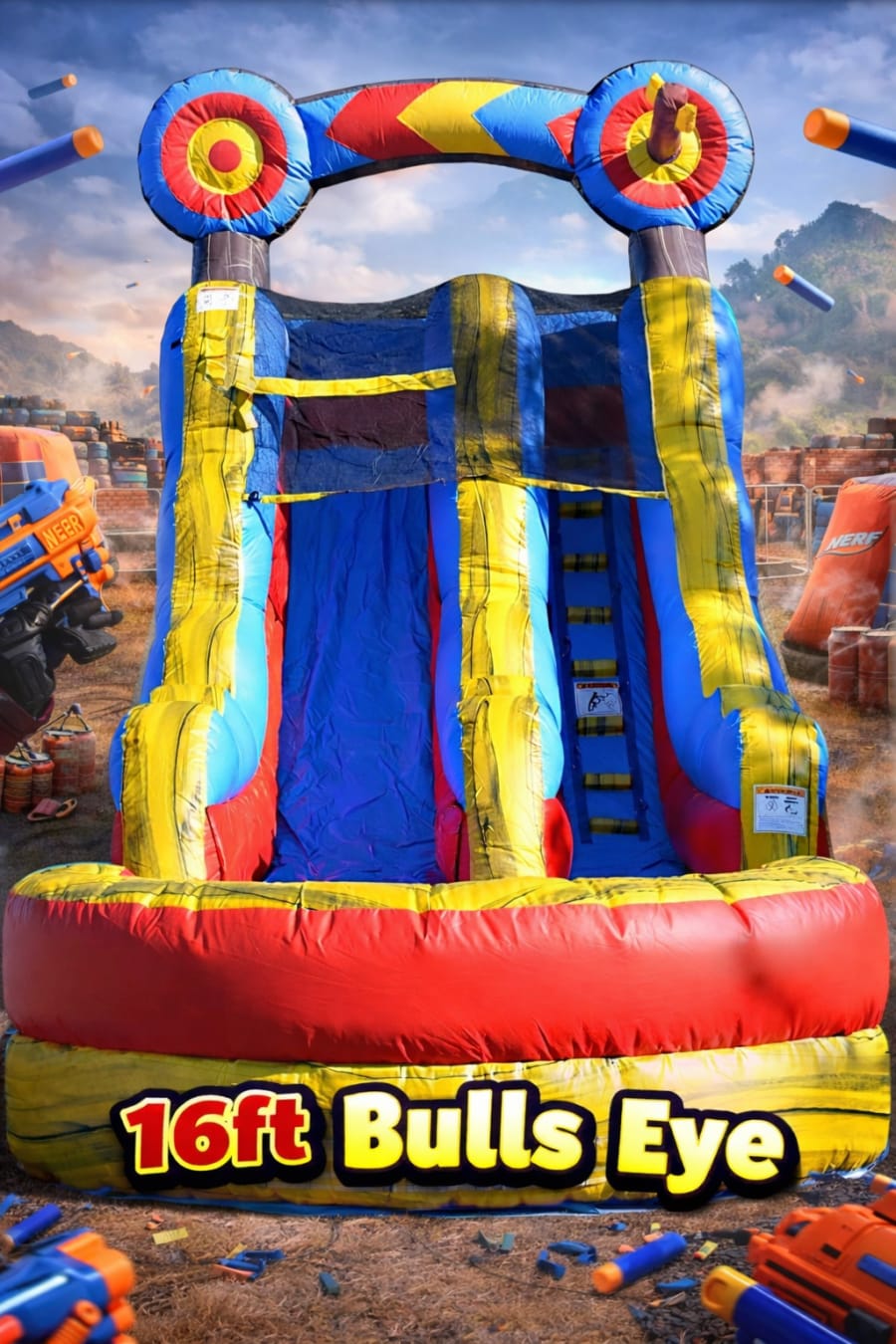 Make your next celebration unforgettable with the LOCO INFLATABLES 16FT Bulls Eyes Water Slide Wet/Dry This vibrant inflatable slide is designed to bring non-stop excitement for guests of all ages, whether it’s a birthday party, family reunion, school event, or neighborhood gathering. With its eye-catching Bulls Eye theme and thrilling center shot down to the pool, this inflatable guarantees laughter, joy, and plenty of splashes! 🎉💦